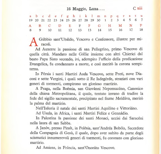 Ad Primam: il Martirologio del 16 Maggio 2021.