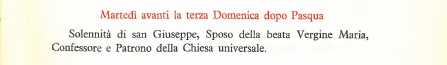 Nota: col Calendario Universale anteriore al 1913 il Patrocinio di San Giuseppe si celebra la III Domenica dopo Pasqua.